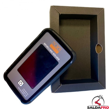 La Bevelling Solver è dotata di una robusta custodia protettiva in gomma in modo da resistere anche agli ambienti di lavoro più impegnativi. Il suo schermo touchscreen da 4" con risouzione da 320 x 480 px offre una visione chiara delle impostazioni. Per renderla ancora più pratica nell'utilizzo questa presenta un magnete nella parte posteriore in modo da poter essere fissata alla propria smussatrice.