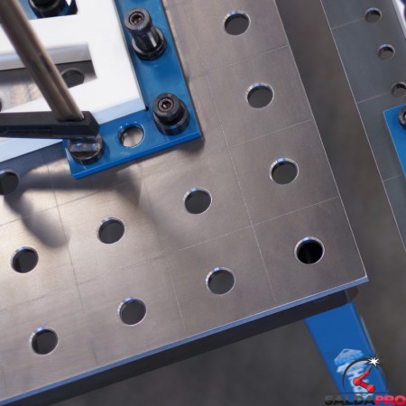 Il tavolo di saldatura BASIC è disponibile con fori da 16 mm disposti su una griglia 100x100 mm, uno delle più diffusi sistemi di foratura che garantisce un ottima flessibilità di fissaggio e facilità di utilizzo. In questo modo non sarai limitato nelle possibilità di creare strutture saldate!