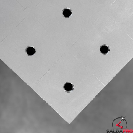 La superficie e le spalle laterali dei tavoli per saldatura SteelPlus INOX si contraddistinguono per il loro sistema di fori da 16 mm predisposti in una griglia 100 x 100 mm.