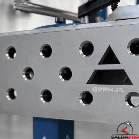 La superficie e le spalle laterali dei tavoli per saldatura SteelMax INOX si contraddistinguono per il loro sistema di fori da 28 mm predisposti in una griglia 100 x 100 mm.