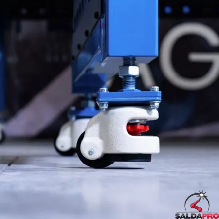 Le gambe, quando dotate di ruote, permettono di creare una postazione di lavoro flessibile e dalla massima la mobilità. Ogni ruota è dotata di un meccanismo di bloccaggio che mantiene il banco in posizione, garantendo sicurezza e stabilità.