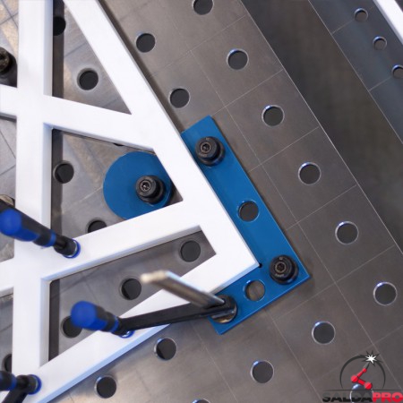Il sistema con fori da 16 mm risulta perfetto per lavori su strutture piccole e leggere che richiedono una maggiore precisione. È molto popolare in tutte quelle lavorazioni dove il bloccaggio preciso degli utensili è essenziale per ottenere risultati di saldatura eccellenti.