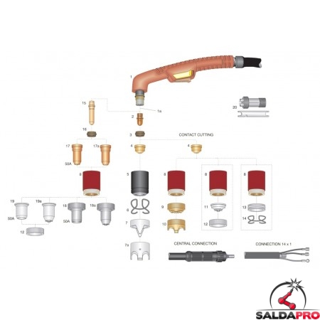 Noi di SaldaPro siamo in grado di fornire la torcia completa Ergocut A101 originale marcata Trafimet (cod. originale PA 1450).